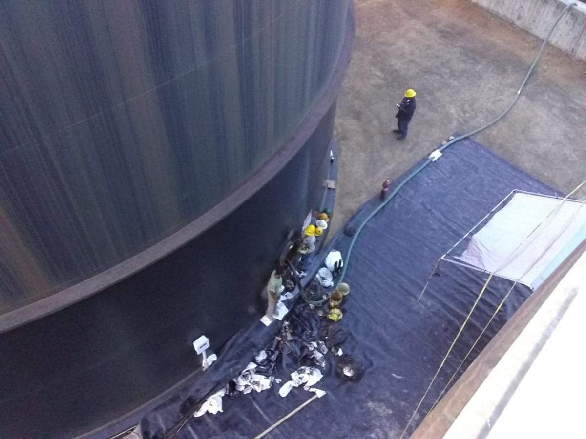 Below are photos of some of our more recent projects, including the successful cleaning of two 100,000 gallon bunker fuel tanks, the cleaning of Chalillo hydroelectric facility, our team, and The GreenWave team having a safety meeting before the confined space cleaning starts!